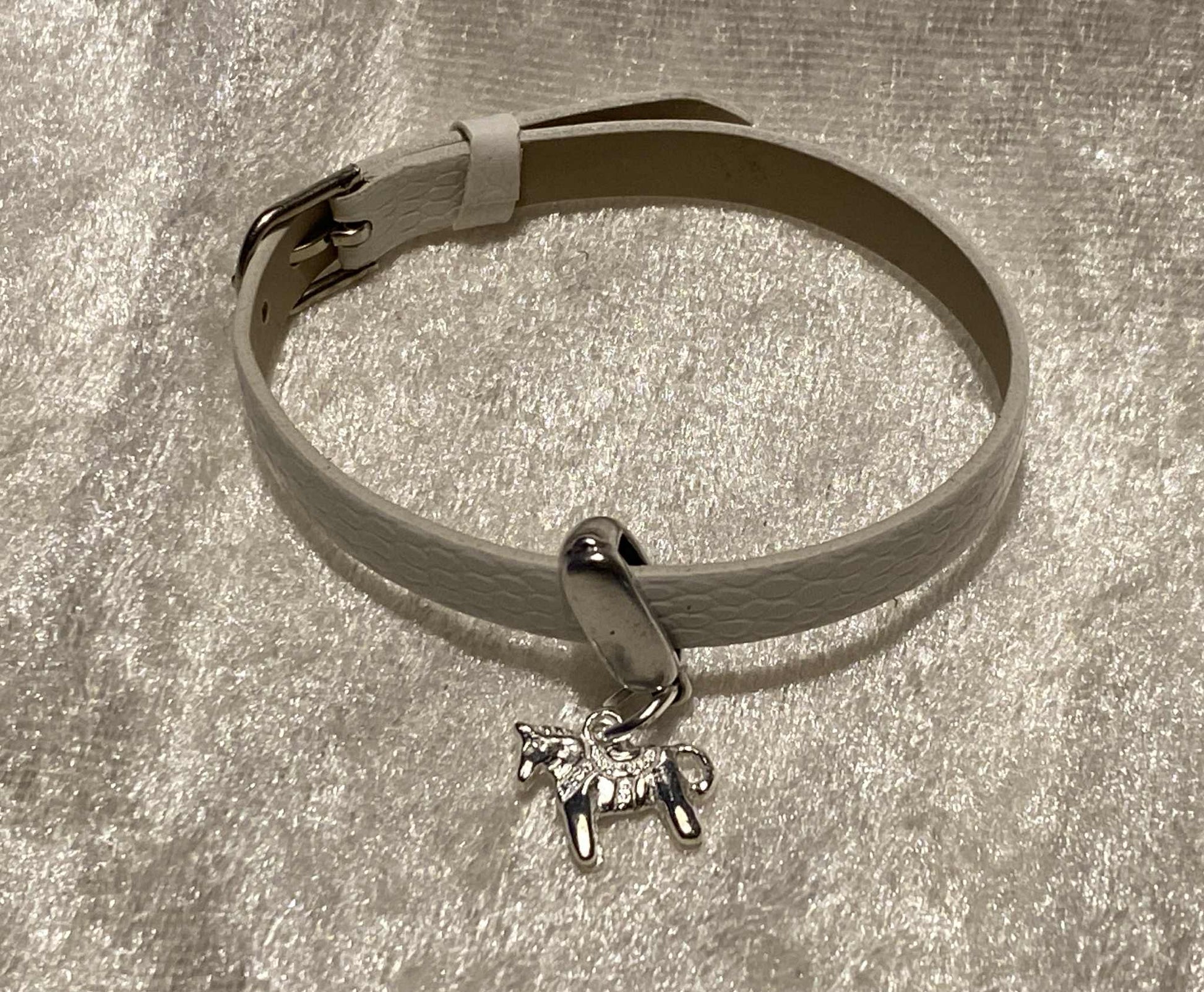 Stilrent gulligt armband i skinnimitation, med en liten dalahäst.