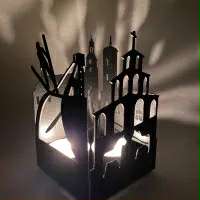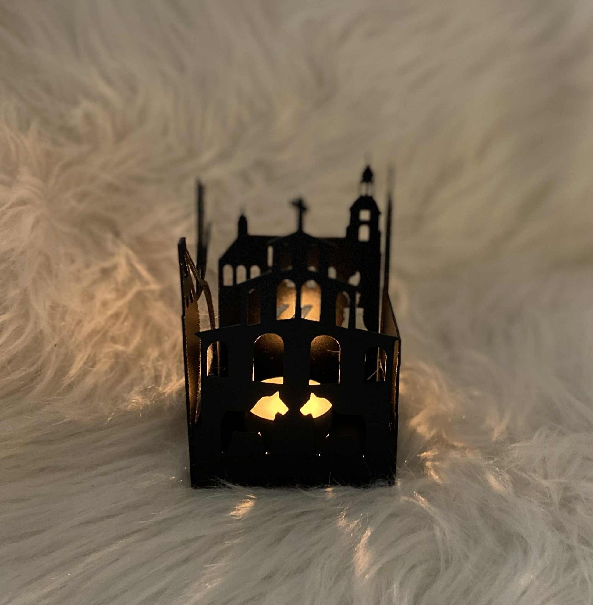 Laserskuren lykta i egen Decoria Design, med silhuettmotiv