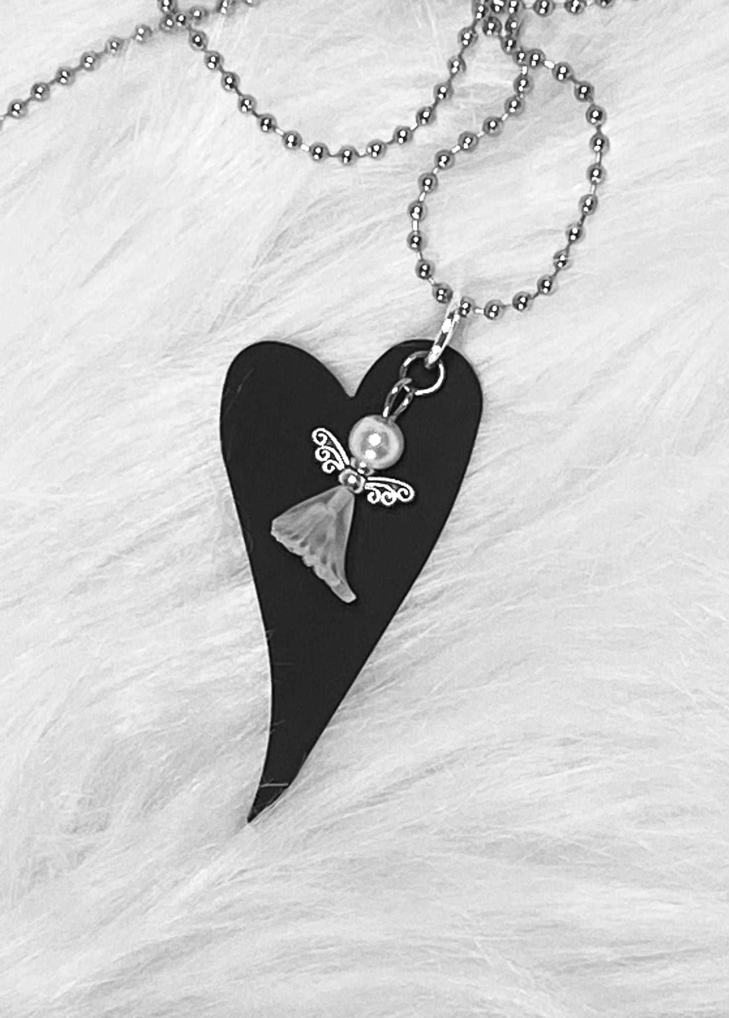 Halssmycke med svart hjärta och ängel